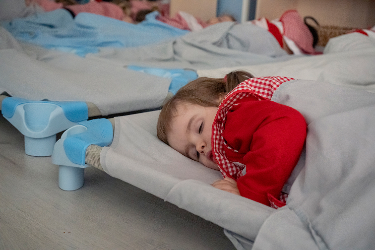 Descanso en cunas o camas adaptadas a su edad.